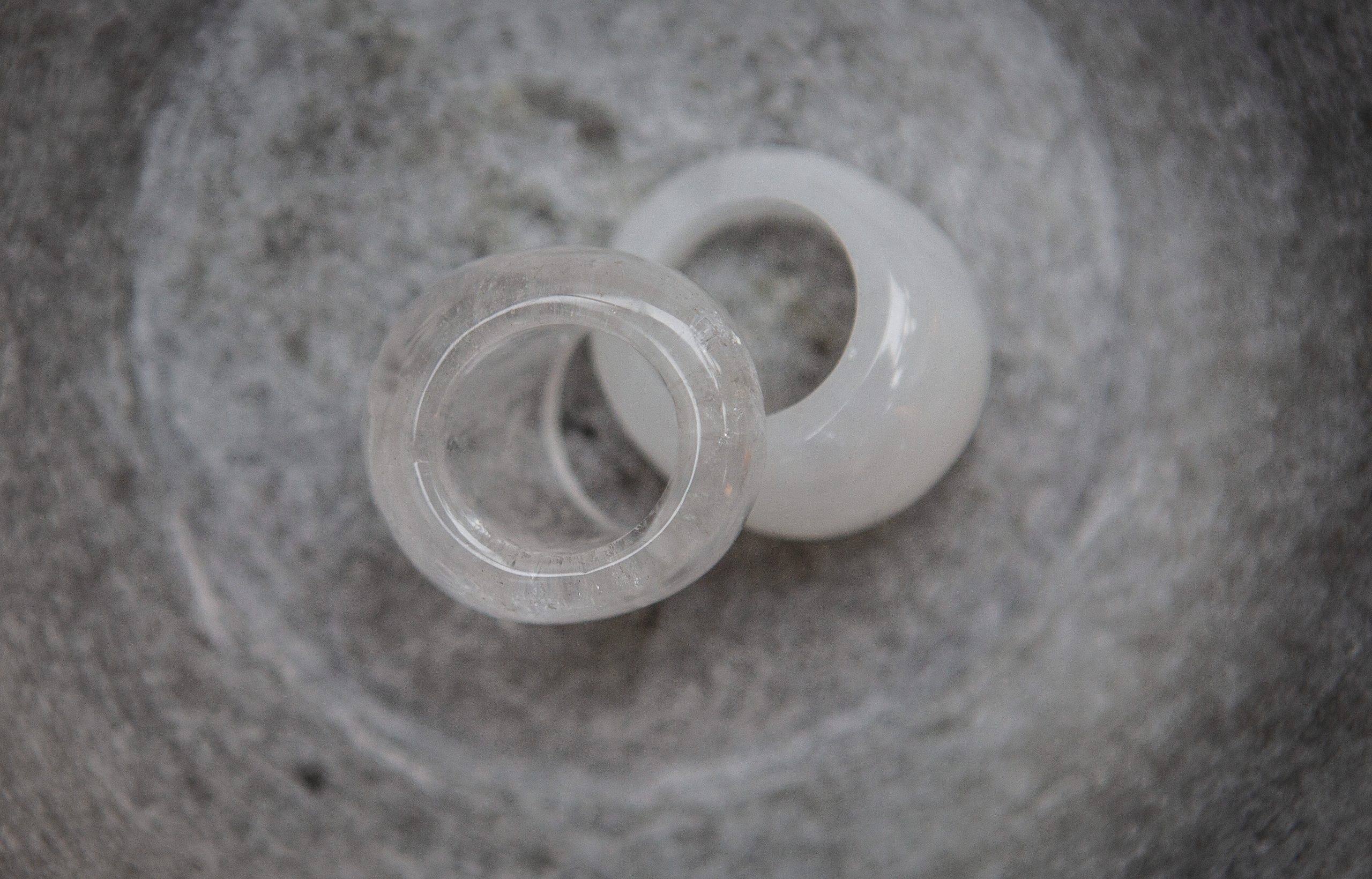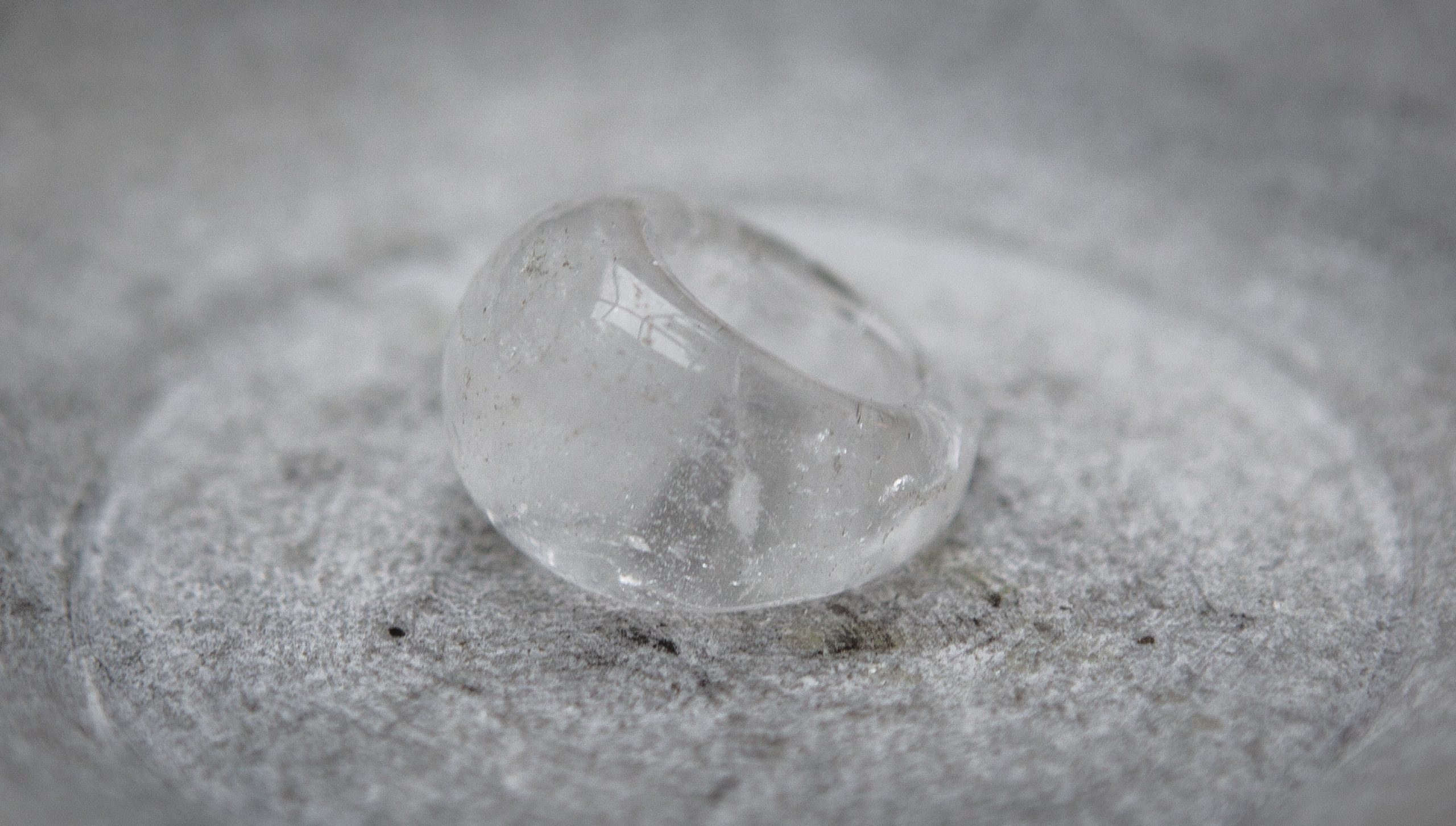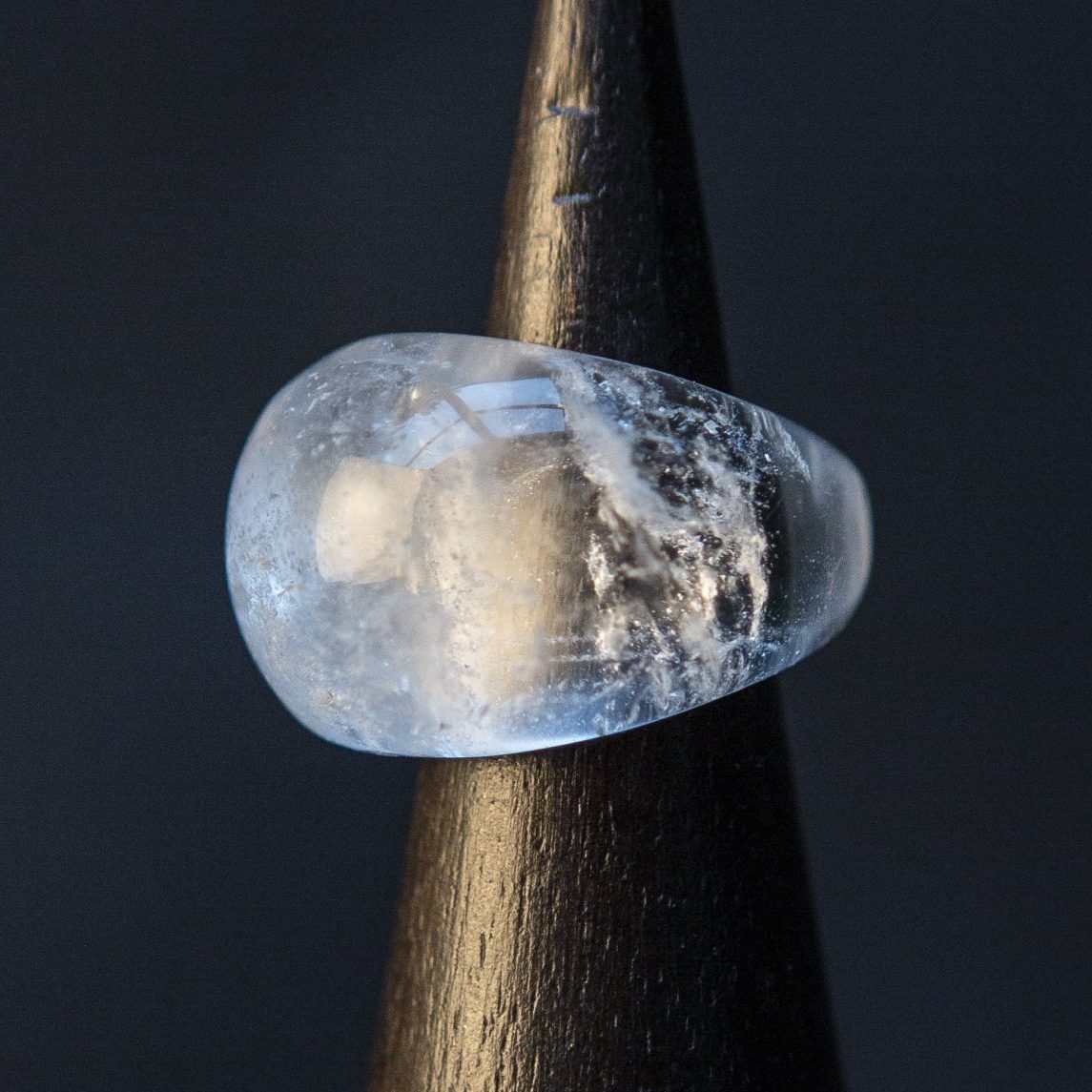 A gorgeous statement piece, this solid stone ring is made from rock crystal, a beautiful semi-precious stone with gorgeous inclusions. Available in 3 sizes.