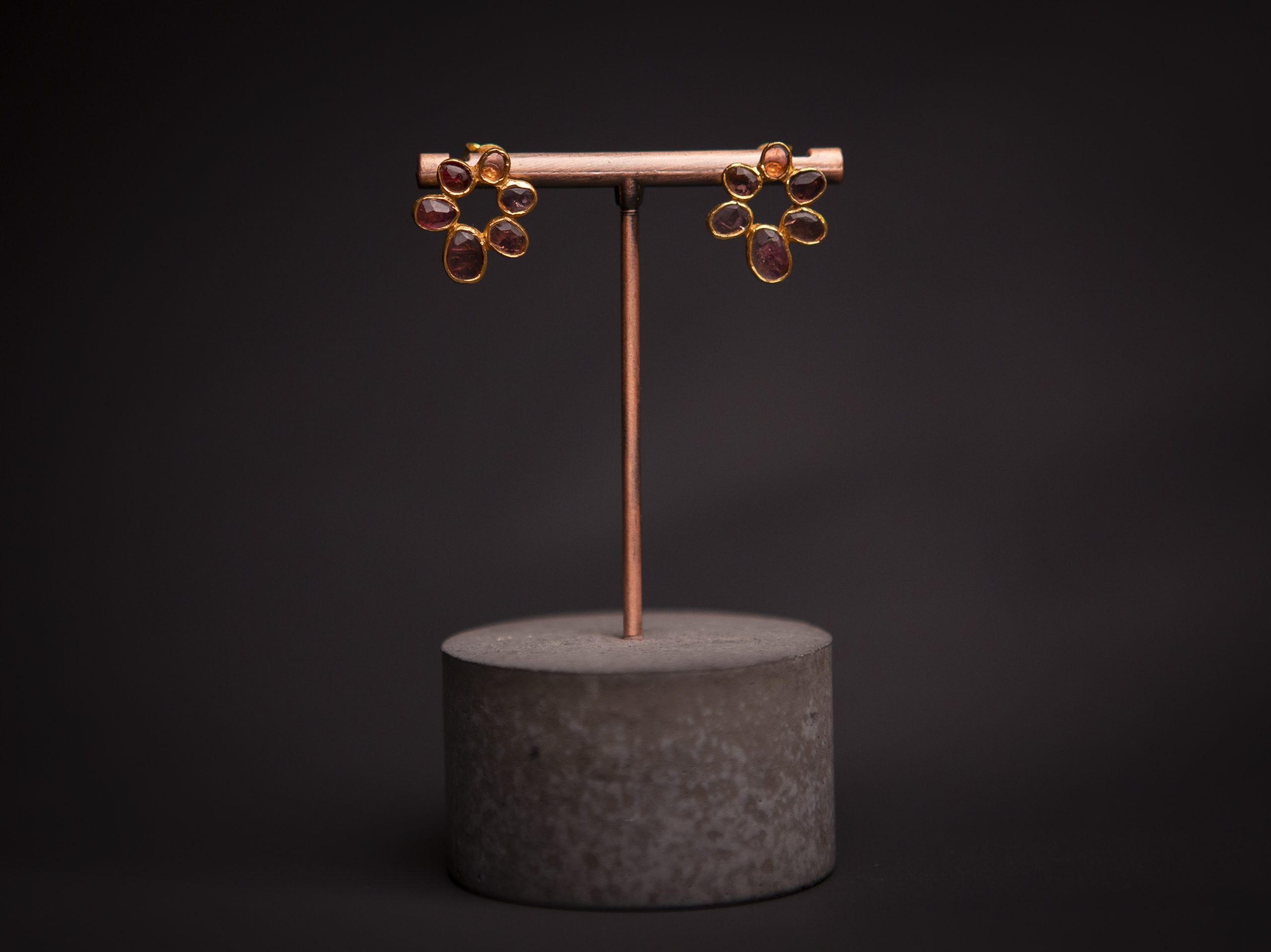 Gems: 6 rose cut pink tourmaline; stone sizes 3x5mm to 5x7mm.