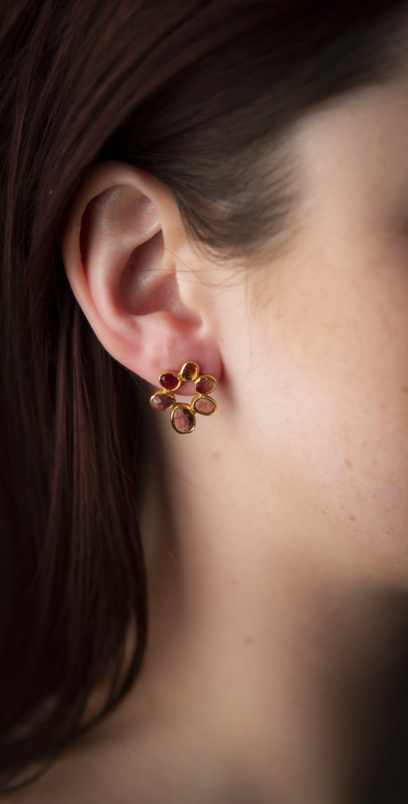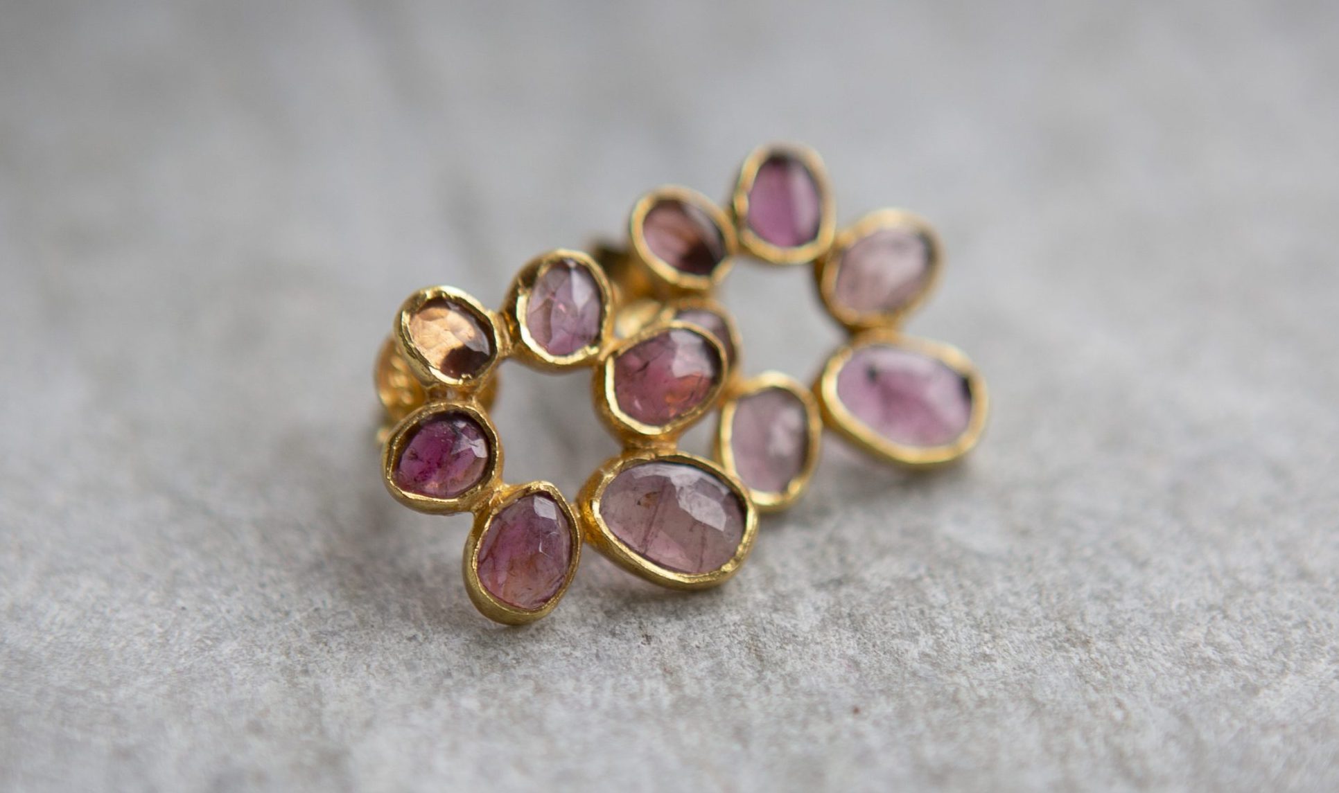 A pair of pretty and feminine pink tourmaline flower stud earrings.