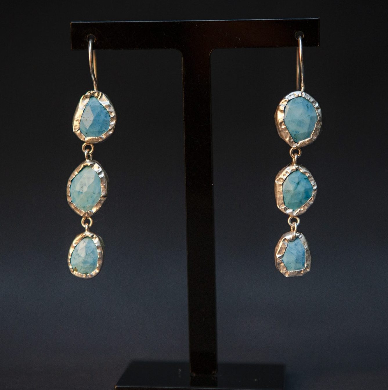 Gems: 3 faceted, bezel set turquoise howlite semiprecious stones; stone sizes approx. 8x10mm to 10x13mm